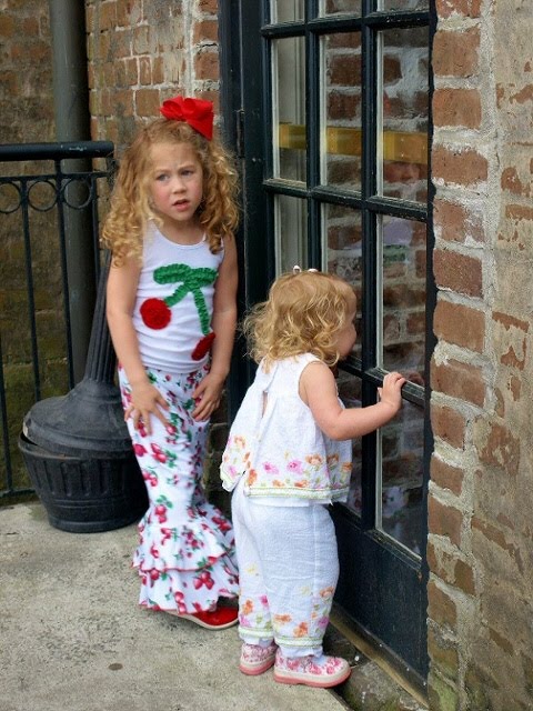 It was absolutely beautiful the entire weekend we were in Savannah this month! Although we are there at least once a month, we have never taken the girls downtown. Our fun weekend actually started Friday. The girls played with the Moody and Smith children at the Moody's house before we headed to Tybee. The Seafood Festival was technically on Saturday, but there was a little "carnival" on Friday. Honestly, it wasn't that great (it was tiny!), but the girls had fun. We had a yummy seafood dinner at Stingray's before heading back to the Lewises' house for the night.Saturday morning, Brad had to work, of course, but later that afternoon, we took the girls down to River Street. Brad took the girls to watch some street performers; we ate on the river; we skipped along the river. Or, the girls skipped along the river. And that was before we hit the candy shops all along River Street! :)